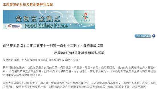 r香港特别行政区政府食物安全中心也特别提醒过:葫芦科果实可能会含有大量葫芦素,有苦味的葫芦科果实摄入过多会引起身体不适,应避免食用味道变苦或有异常味道的瓜菜。