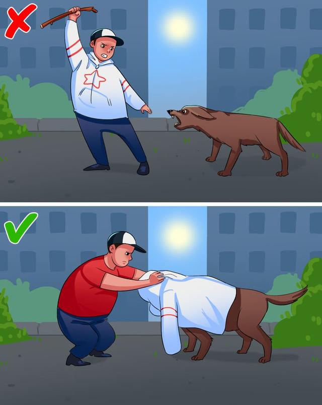 专家认为,此时更多的是利用物品保护自己,而不是反攻。例如把包、雨伞、书本等物品,放在胸前,挡在人和狗之间,一则可以用来吸引狗狗注意力,二则可以当作盾牌保护自己。