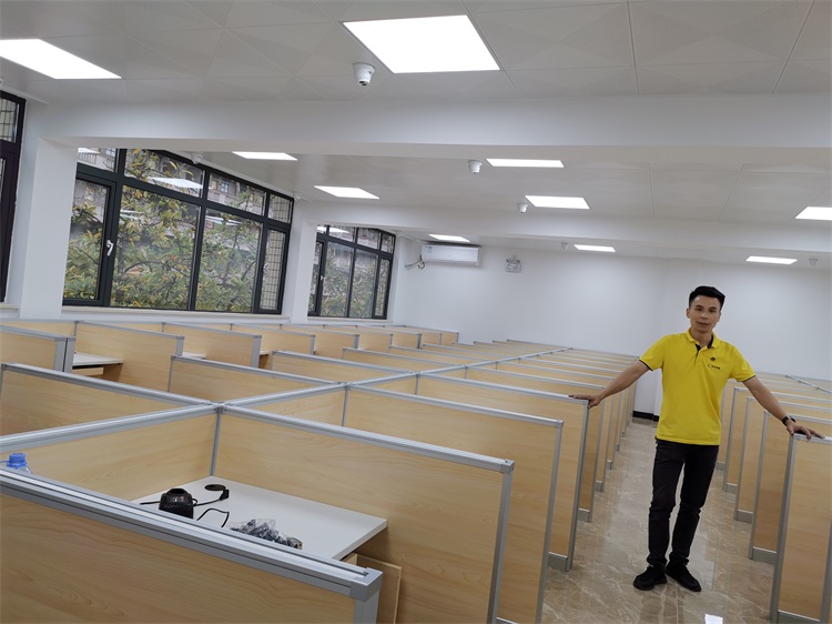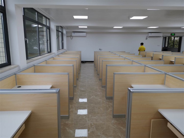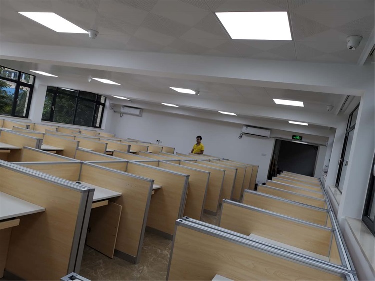風桌,最大程度的充分利用教室空間,每個座位都有可升降的屏風,屏風升起后可有效
