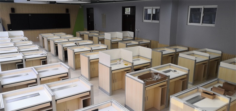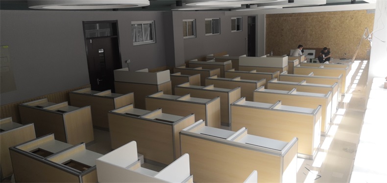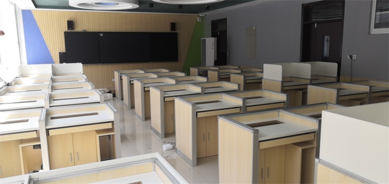 項目地點: 山東濟南寶華中學 項目時間: 2020年8月 項目背景: 面對國家招生考試制度改革下,普通考場不能滿足需求,臨時增加建造多個考試專用考場,在時間和資金方面都不現(xiàn)實。所以需要一種屏風擋板可以升降的電腦桌,來解決標準化考場與計算機語音教室的切換使用,實現(xiàn)一個教室多用途的解決方案。 主要功能: 根據(jù)浙山東濟南寶華中學對教室使用需求,在產(chǎn)品設計方面,電腦桌的左、右、前三面帶升降屏風擋板,用于隔斷相鄰考生視線。當屏風升起時,可以用作教室語音標準化考試使用,當屏風降下時,可以用于學生上課使用。實現(xiàn)了一室多用、考學合一。 |