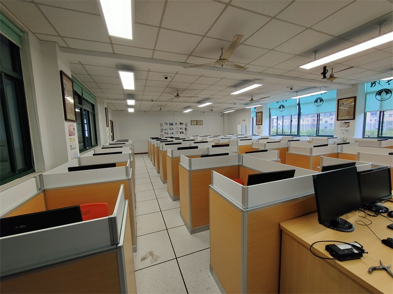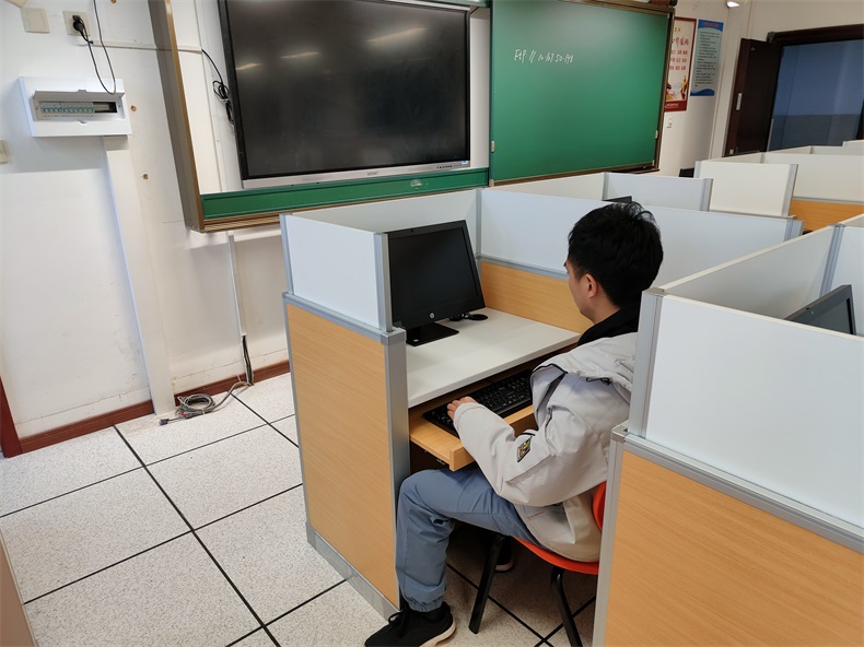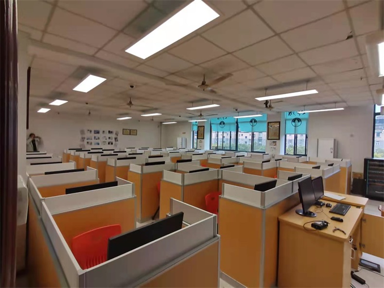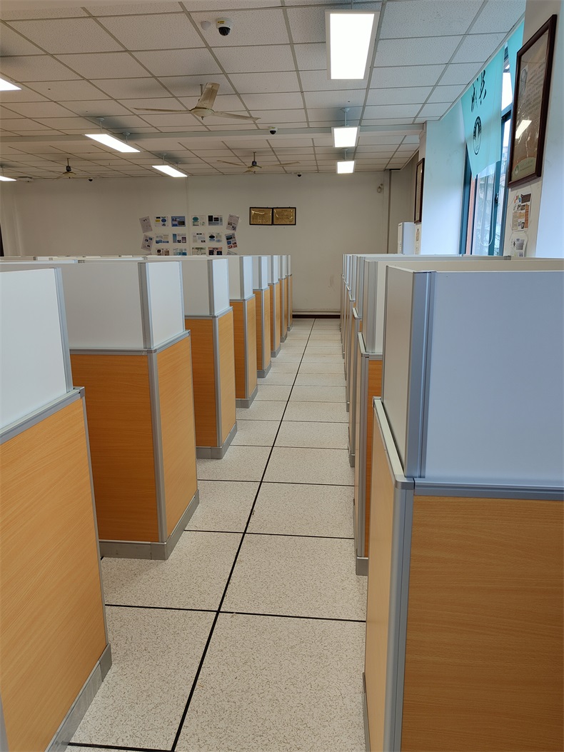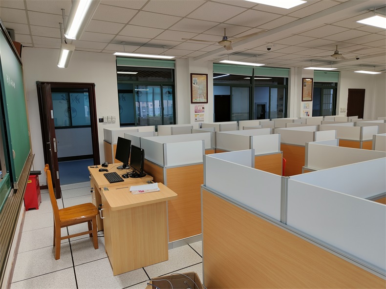 根據上海市實驗西校對多媒體升降屏風教室使用需求,在產品設計方面,電腦桌的左、右、前三面帶升降屏風擋板,用于隔斷相鄰考生視線。當屏風升起時,可以用作教室計算機標準化考試使用,當屏風降下時,可以用于學生上課使用。實現了一室多用、考學合一。