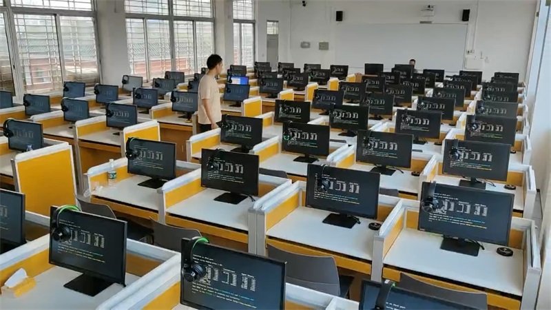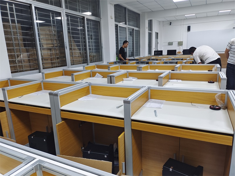 根據梅州市興寧中學對計算機室的使用需求,方方智能對該計算機室進行了升級改造,設計了一套可以升降的智能升降屏風桌,每個座位都有可升降的屏風,考試時屏風升起后可有效的隔斷相鄰人的正常視線,防噪音效果,可達到互不干擾的作用,當屏風降下時,可以用于學生日常上課使用。實現了一室多用、考學合一。