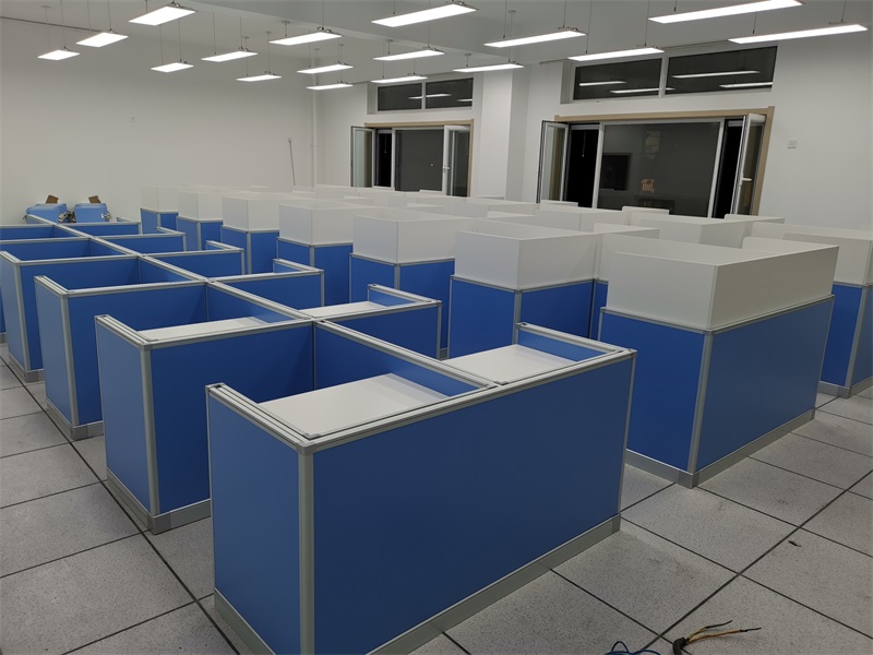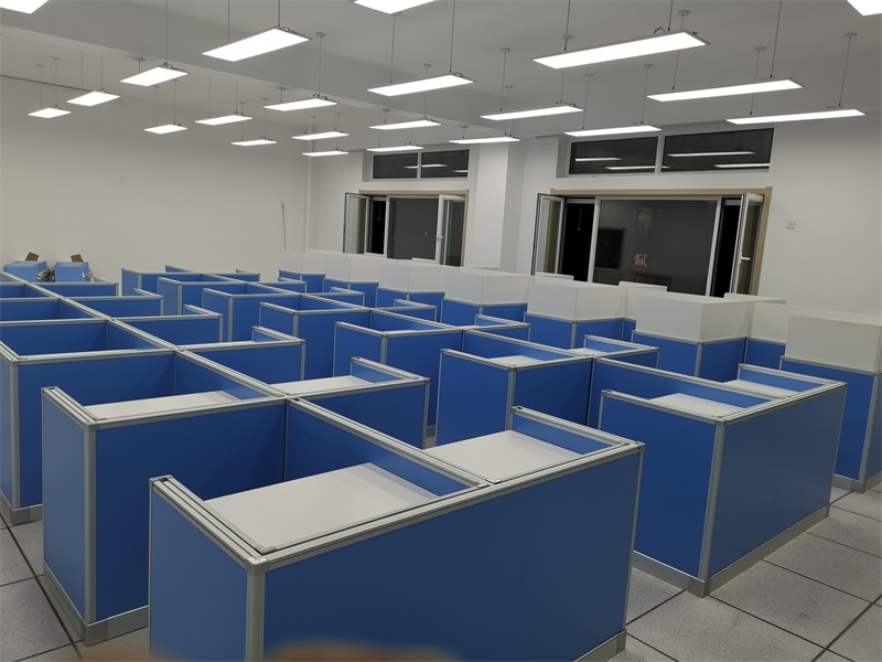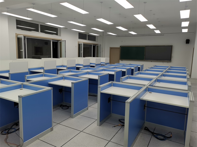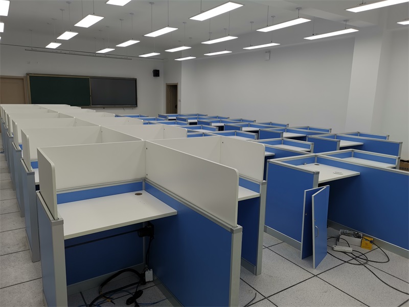 根據(jù)北京教育科學研究院豐臺學校對計算機室的使用需求,方方智能對該計算機室設(shè)計了一套可以升降的智能升降屏風桌,每個座位都有可升降的屏風,考試時屏風升起后可有效的隔斷相鄰人的正常視線,防噪音效果,可達到互不干擾的作用,當屏風降下時,可以用于學生日常上課使用。實現(xiàn)了一室多用、考學合一。