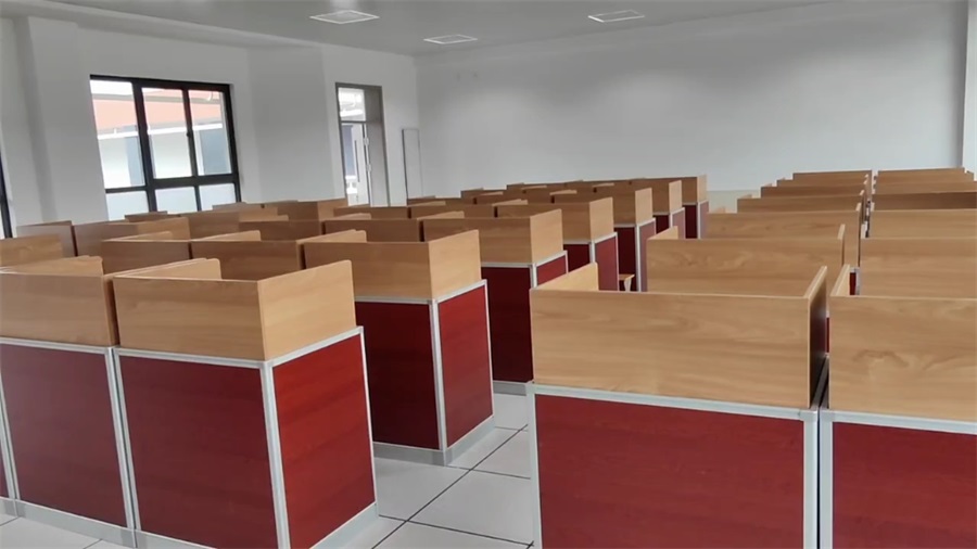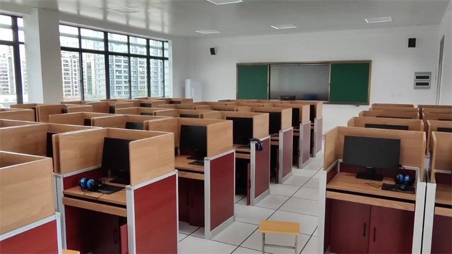 根據(jù)浙江舟山普陀區(qū)第二中學(xué)對升降屏風(fēng)語音教室的使用需求,方方智能對該在線學(xué)習(xí)室設(shè)計了一套可以升降的智能升降屏風(fēng)桌,每個座位都有可升降的屏風(fēng),考試時屏風(fēng)升起后可有效的隔斷相鄰人的正常視線,防噪音效果,可達到互不干擾的作用,當(dāng)屏風(fēng)降下時,可以用于學(xué)生日常上課使用。實現(xiàn)了一室多用、考學(xué)合一。