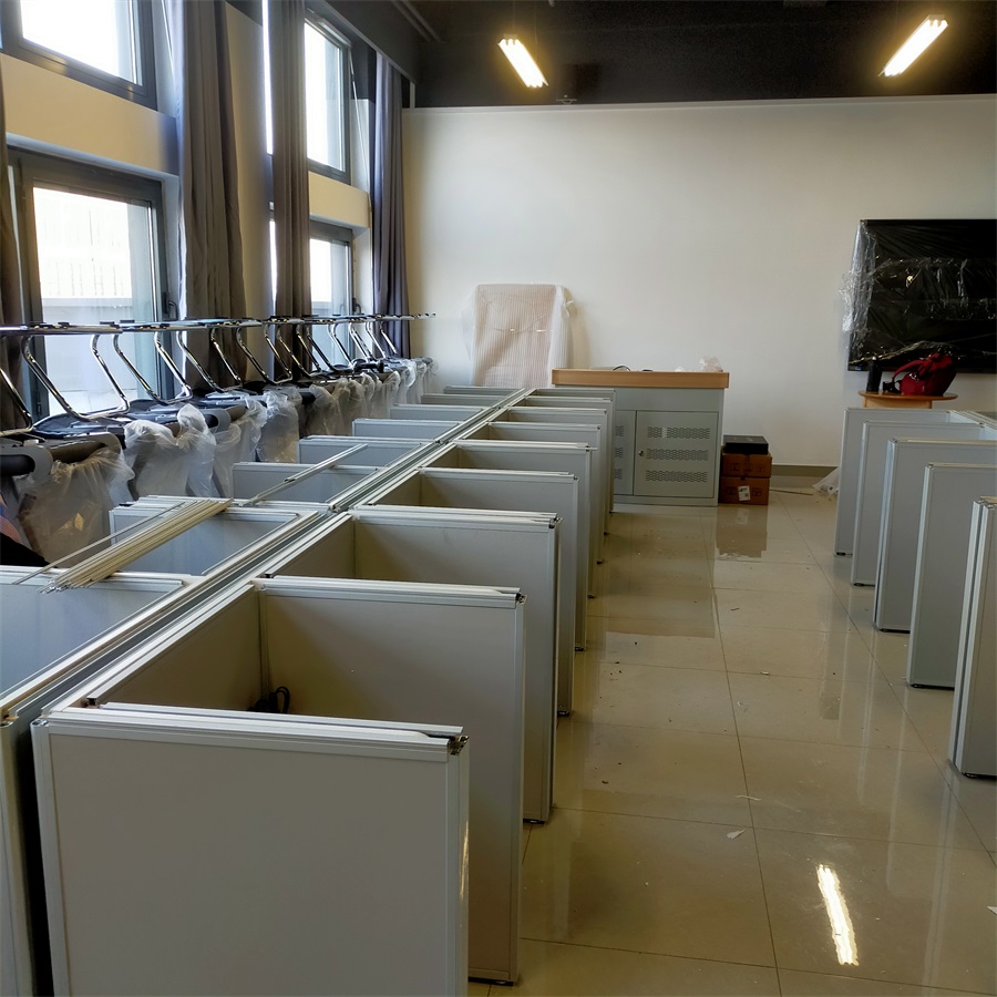 根據北京信息科技大學(新校區)對升降屏風語音教室的使用需求,方方智能對該語音室設計了一套可以升降的智能升降屏風桌,每個座位都有可升降的屏風,考試時屏風升起后可有效的隔斷相鄰人的正常視線,防噪音效果,可達到互不干擾的作用,當屏風降下時,可以用于學生日常上課使用。實現了一室多用、考學合一。