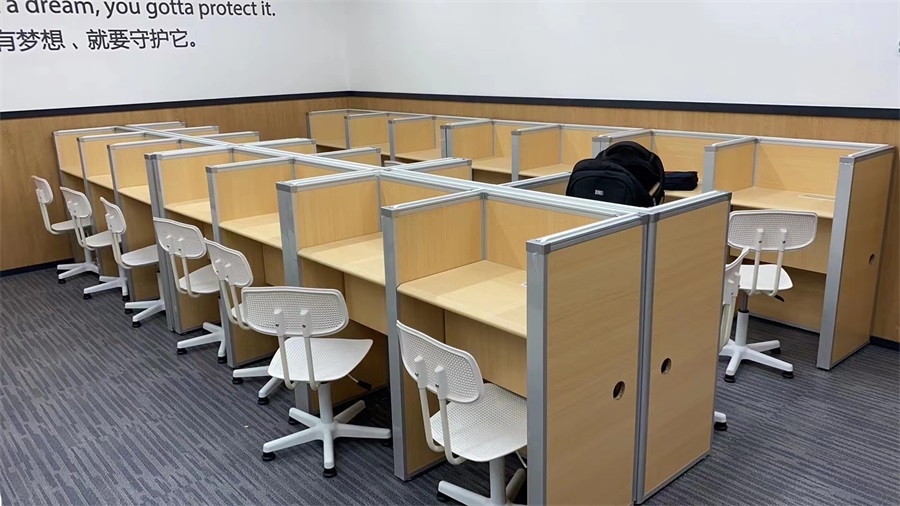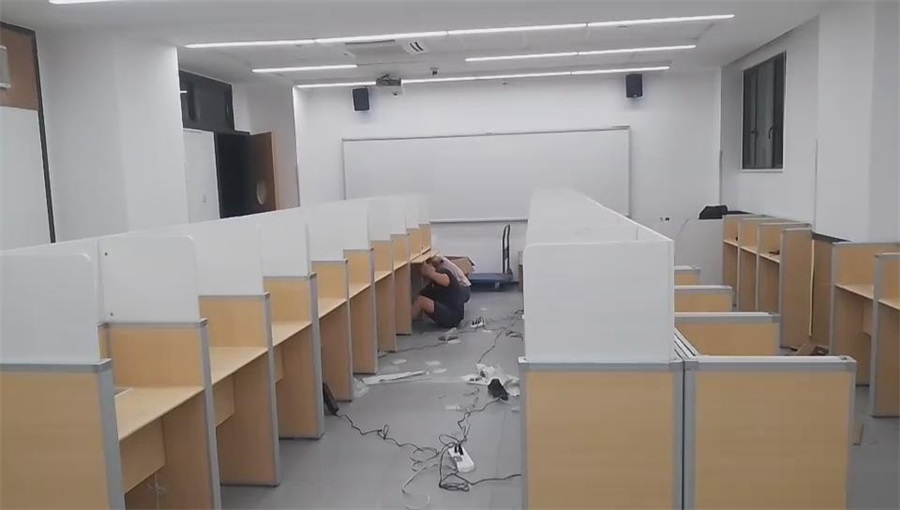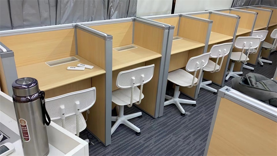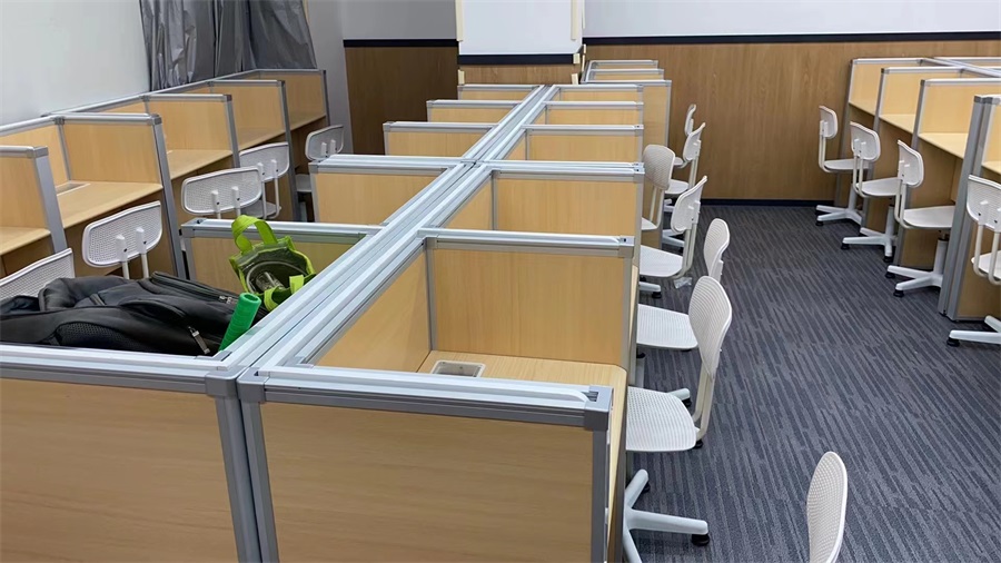 根據新東方教育科技集團對培訓考試教室的使用需求,方方智能對該培訓考試室設計了一套可以升降的智能升降屏風桌,每個座位都有可升降的屏風,考試測試時屏風升起后可有效的隔斷相鄰人的正常視線,防噪音效果,可達到互不干擾的作用,當屏風降下時,可以用于學生日常培訓上課使用。實現了一室多用、考學合一。