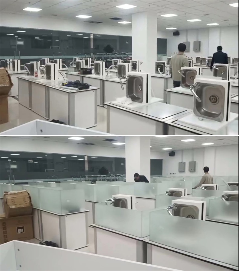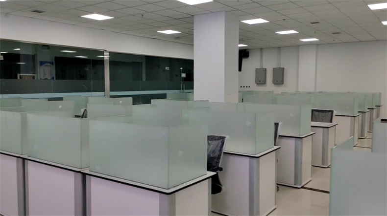根據(jù)陜西科技大學(xué)對釀酒研究院培訓(xùn)中心的使用需求,方方智能對該語音室設(shè)計了一套可以升降的智能升降屏風(fēng)桌,每個座位都有可升降的屏風(fēng),考試時屏風(fēng)升起后可有效的隔斷相鄰人的正常視線,防噪音效果,可達(dá)到互不干擾的作用,當(dāng)屏風(fēng)降下時,桌面齊平可以用于學(xué)生日常上課使用。實現(xiàn)了一室多用、考學(xué)合一。