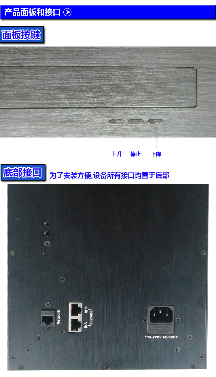 遙控、中控RS232/RS485和面板按鈕三種控制方式