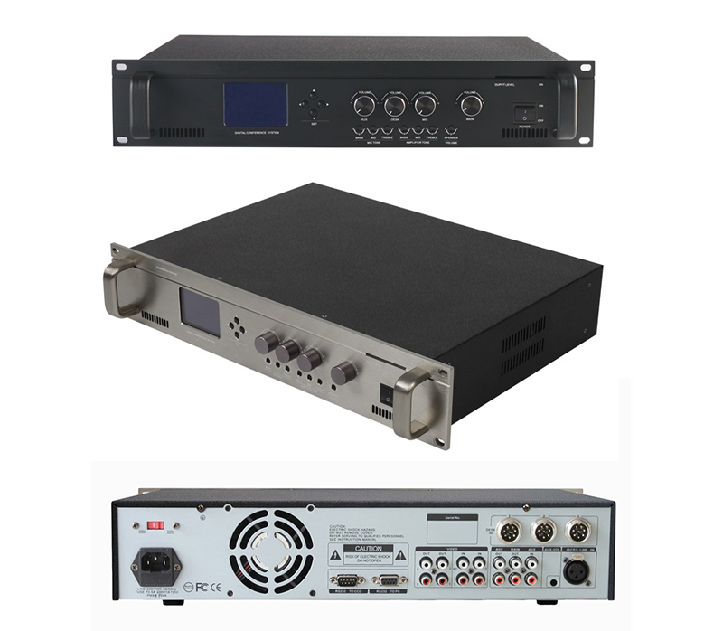 14、220V交流供電,機內采用大功率環形變壓器,功率充足,除了可滿足本機使用之外,還可以供給討論單元使用,其輸出電壓為24伏直流電源,屬安全電壓范圍,確保與會者的使用安全。